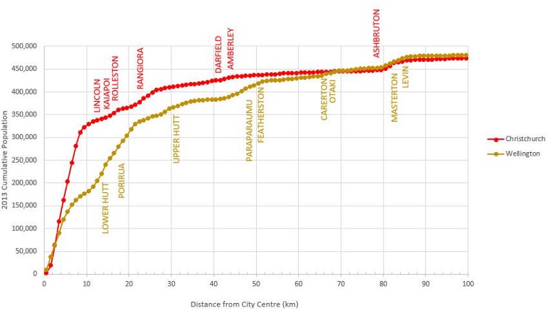 Historically Christchurch has had a compact ‘apple’ shape. The vast bulk of its population has been housed within 10 km of the city centre. This is in contrast to other cities in New Zealand, such as, Wellington which has a more linear form. Greater Wellington growth extends up the Kapiti Coast and Hutt Valley.
