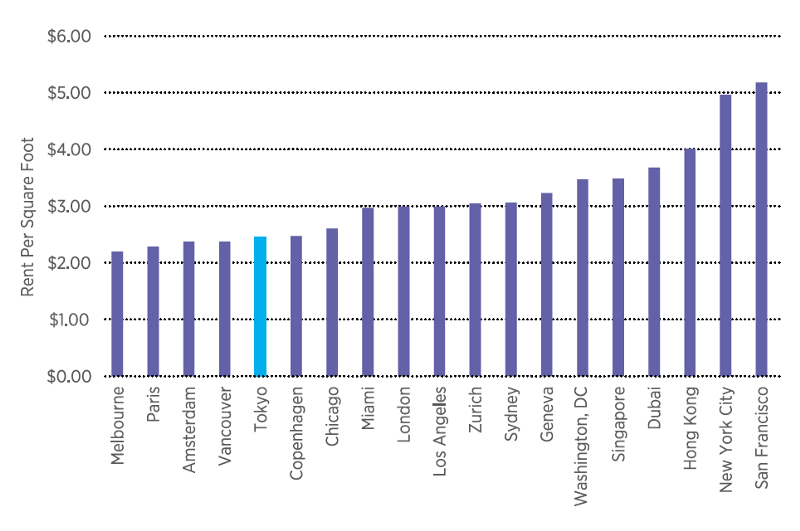5. Even though Tokyo is the largest city in the world it has surprisingly affordable housing. It seems that competitive transport mechanisms combined with competitive urban housing intensification characteristics has allowed Tokyo to be a relatively affordable city.