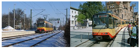 The Karlsruhe model commenced service in 1992, the service provides a connection between the regular railway network (picture on left) and the city’s local tram network (picture on right). The whole system is now called the Karlsruhe Stadtbahn. Passengers can travel from distant towns such as Baden-Baden directly into the city centre of Karlsruhe. The tram-trains bridge the inconvenient distance between the main station and the city centre. For most trips, the number of train transfers has been reduced significantly.