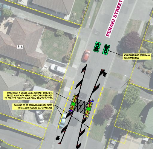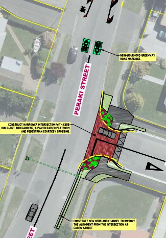 • Residents on Peraki Street specifically were sent letters inviting them to give their feedback on the project. After considering local residents’ feedback, the cycleway designs were finalised and adopted.