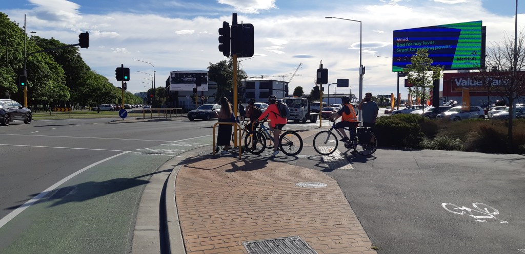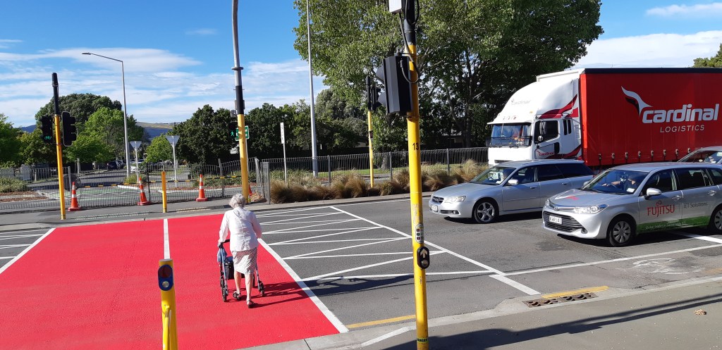 Two weeks ago a person riding their bike across Brougham Street was tragically killed when another person drove their van into him. Article here. The way it’s written is diappointing, almost reading like a “how not to write about cycle crashes” as described in this article. I was happy to see that Waka Kotahi (new name for the NZ Transport Agency) has acted very quickly and remarked the crossing with bright red paint and dragon’s teeth. It doesn’t really address the fundamental problem of having a high-speed motorway feeding into an urban residential street, but it certainly can’t hurt to have such prominent markings.