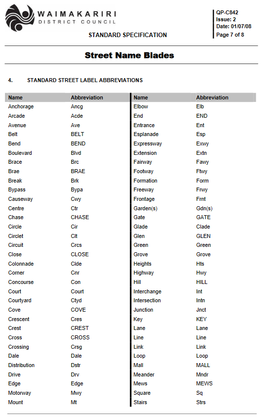 If anyone had ever asked me to guess, I would have said we have maybe a dozen or so of these types of labels. But I would have been so wrong. I was perusing the Waimakariri Engineering Code of Practice when I stumbled upon this table.
