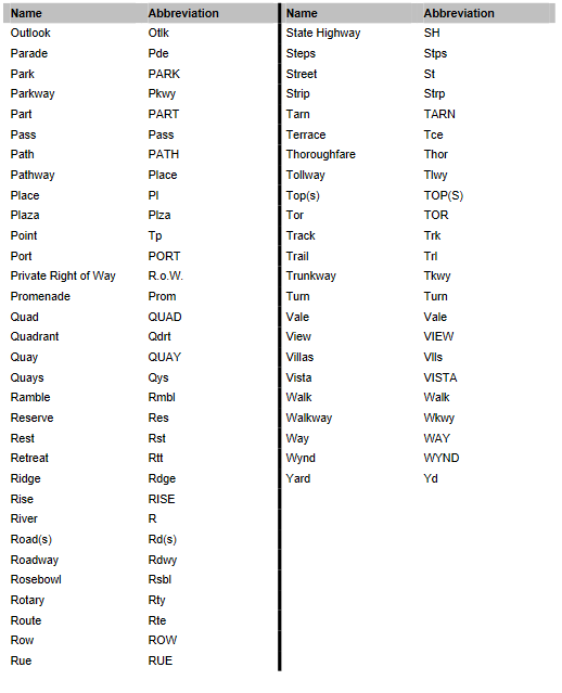 I did an analysis of Christchurch street names a few years ago. Out of 4000+ streets there were 58 different typonyms used, including a few not on Waimak’s list. 23 of these were only used once though, and the top 5 (Street, Place, Road, Lane, & Avenue) were used for 81% of names, so definitely room for more variety.