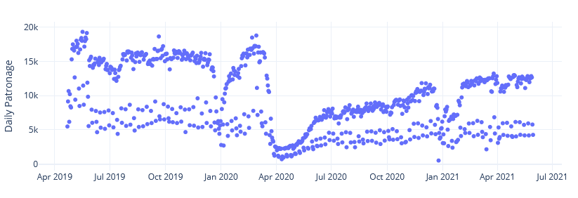 These forecasts proved to be surprisingly accurate. Actual patronage is published here. The first few months after opening were almost bang on the 2021 estimate of around 15,000 boardings per day. Then covid hit and it dropped off a cliff. Over the last year it has steadily increased and is back to about 80% of where it had been.