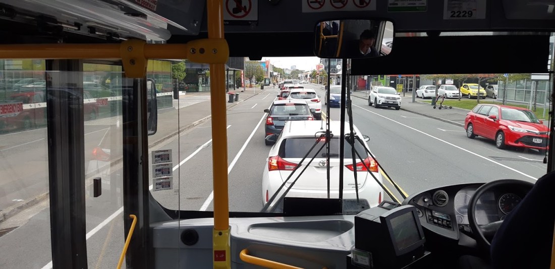 It was the best of travel times, it was the worst of travel times... I was following a bus down Riccarton Road yesterday and was impressed with how efficient the new bus lanes are. In the evening peak hour this lane shifts around 800 people in 25 buses, compared to the traffic lane next to … Continue reading A Tale of Two Bus Lanes