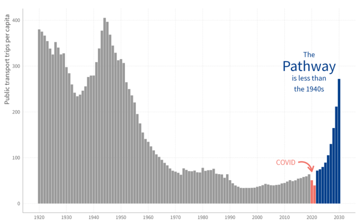 The full document includes the graph below, showing public transport usage per capita over the last hundred years or so.