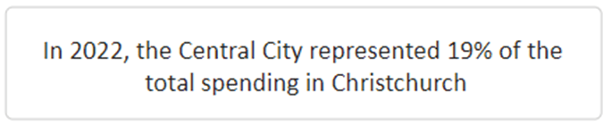 Despite covid and lack of tourists, spending in the central city is growing strongly. It is higher than any of the suburban centres, and the gap between them is widening not closing.