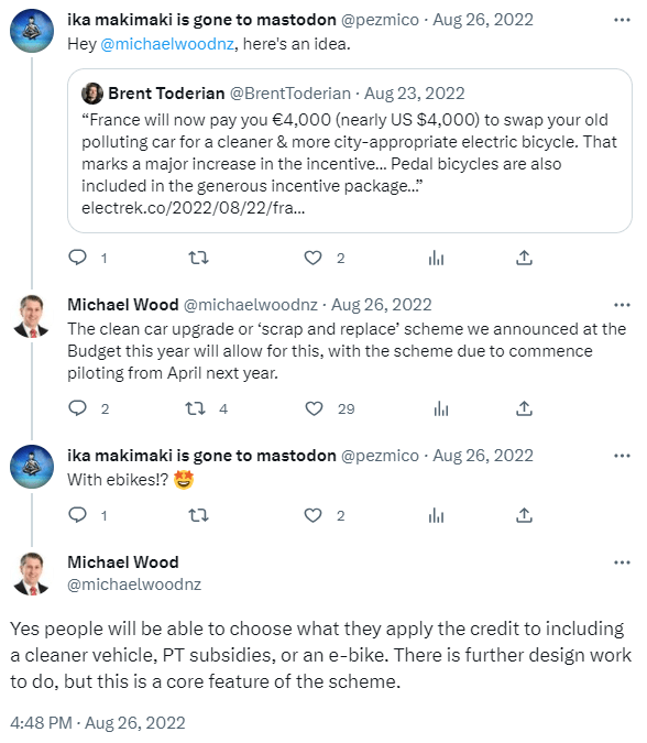 Hipkins threw it on his climate bonfire earlier in the year. But it’s one of the better and more popular policies. I have a sneaking suspicion we may see it back on the table before the election silly season is over. And if it is you may see me and the kids cruising round town on an upgraded longtail.