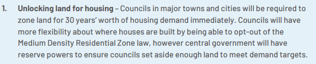 At its heart it takes a whole lot of regulatory powers off councils, forcing them to instead let the market go about building housing unhindered. Somewhat unexpectedly this was driven to a large extent by our most left-wing party (Greens) and opposed by the ones who I thought were meant to be the most libertarian (Act).