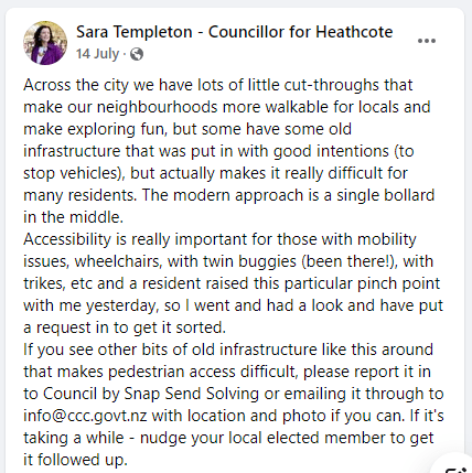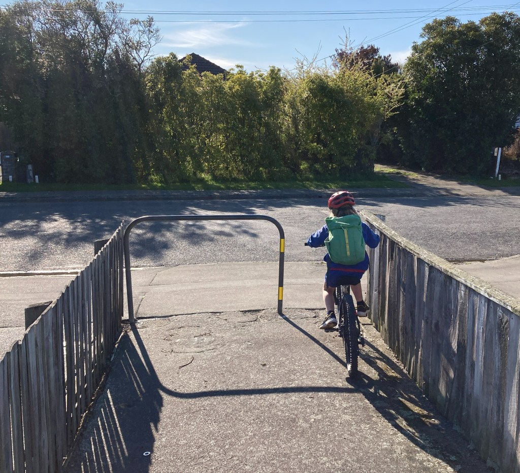 For seven years I’ve been biking through this path with my kids to and from school. And for seven years these barriers have frustrated us. I don’t know why they were placed there. The path is too narrow for cars to fit down anyway so it’s not that. Possibly to block motorbikes. But the trouble is they also block bicycles, tricycles, wheelchairs, mobility scooters, prams, buggies, etc. etc. I’d contemplated taking my angle grinder to them on several occasions but never followed through.