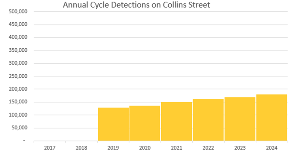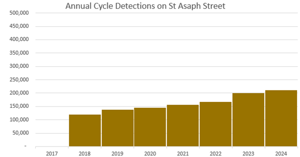 St Asaph Street continues to grow steadily, with roughly double the number of people riding down it now than did 6 years ago when it opened.