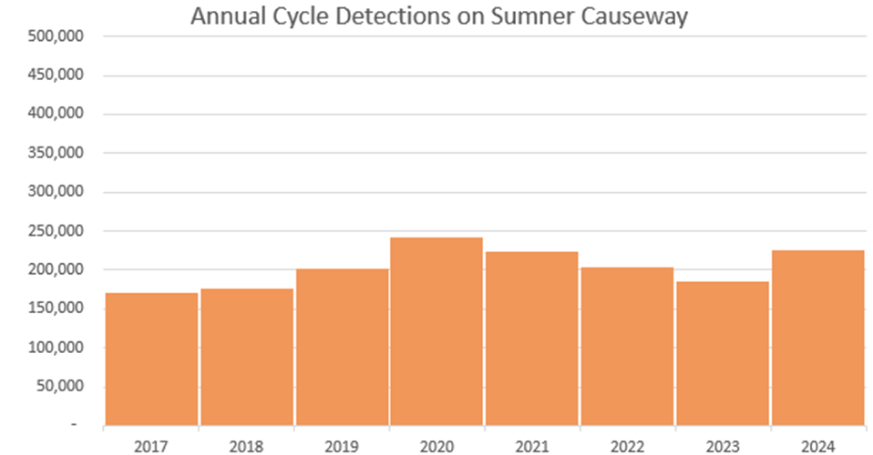 Main Road leading up to the Sumner Causeway bounced back a lot in 2024 after completion of the coastal pathway late 2023. The numbers still didn’t reach the lockdown-related peak of 2020, but it wasn’t a million miles off.